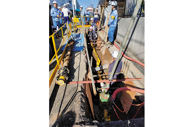 工事開始の96年から段階的に工事量を増やし、計画的に進めてきたが、導管延長が4000kmを超える上に、繁華街が多い首都圏エリアとあって進捗は難航を極めたという。銀座並木通りや新宿・歌舞伎町、渋谷などでは、店舗が営業を終える深夜から早朝という短時間での工事を強いられた。また、電気や水道などの他のインフラ設備が重複して埋設される場所では、他事業者と粘り強く交渉、調整を実施するなど、慎重さも求められた。