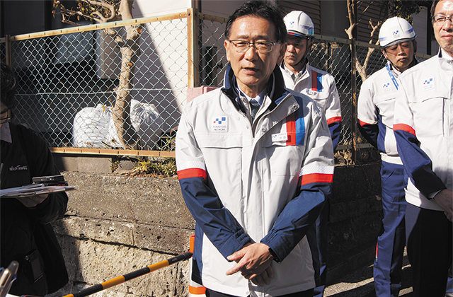 会見で、火元の住宅敷地内のガス管に直径約2㎜の穴が見つかったと明かした上で、「2022年9月の法定点検で腐食の兆候を確認したが、緊急性が低いと判断し、処置しなかった」と説明。点検員が立ち上がり部に腐食の兆候を確認し、補修を提案していたという。また、事故前日の8日夕方から、団地全体のガス供給量が通常の2~3倍に増加していたことも判明した。