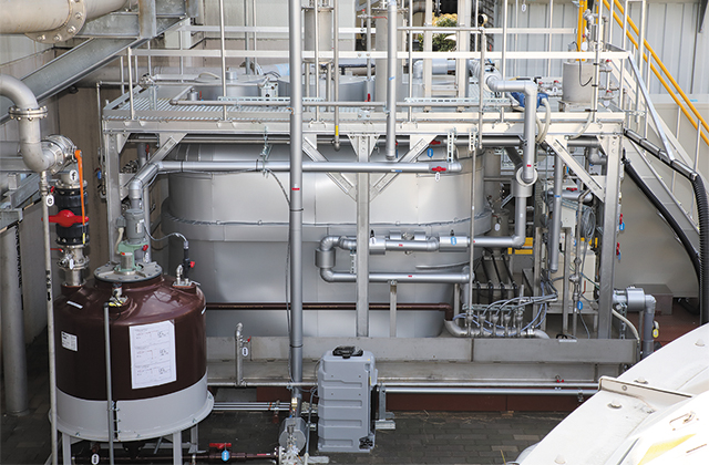 夏秋 海老江下水処理場(大阪市此花区)で、下水汚泥から発生するバイオガス中のCO2にH2を反応させ、より多くのメタンを発生させる実証を行っています。下水汚泥からメタン発酵で発生するバイオガスは60%がメタン、残りはCO2で構成されています。バイオメタネーションを通じてCO2からe―メタンを製造することで、メタン濃度を85%程度まで引き上げることができます。