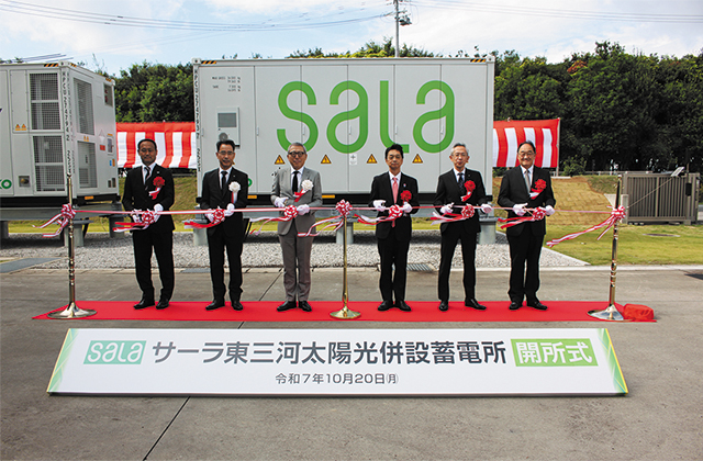 サーラエナジーは2025年10月20日、「サーラ東三河太陽光併設蓄電所」(愛知県豊橋市)の開所式を行った。電力系統との接続による蓄電に加え、既存建物の屋根上に設置した太陽光発電(約736kW)で発電した電気も蓄電する。リチウムイオン電池の容量は7520kW時で、出力は1999kW。一般家庭約600世帯分を賄える。また、この5日前には、浜松市内に系統用の「サーラ浜松蓄電所」も開所した。