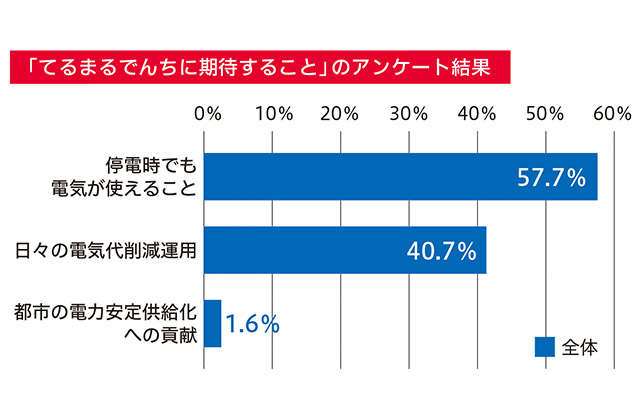 停電対策にも効果的だ。平常時にも常に最低30%の電気を残す運用になっており、非常時には自動的に放電モードに切り替わる。すでにプロジェクトに申し込んだ世帯にアンケートを取ったところ、6割近くが「停電対策に期待する」と回答。災害対応へのニーズの高さがうかがえた。