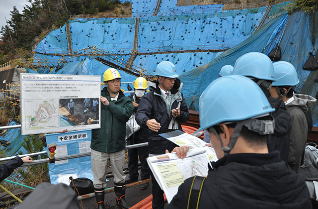 具体的には、ボーリングによる破砕部データの「点」での確認に加え、2号機建屋北側に調査坑を掘削し、その壁面や床面など「面」で評価します。2年程度要する大規模な調査となります。2月初めに現場を訪れましたが、現在はボーリング調査の他、調査坑を掘るために必要な立坑掘削工事を行っています。