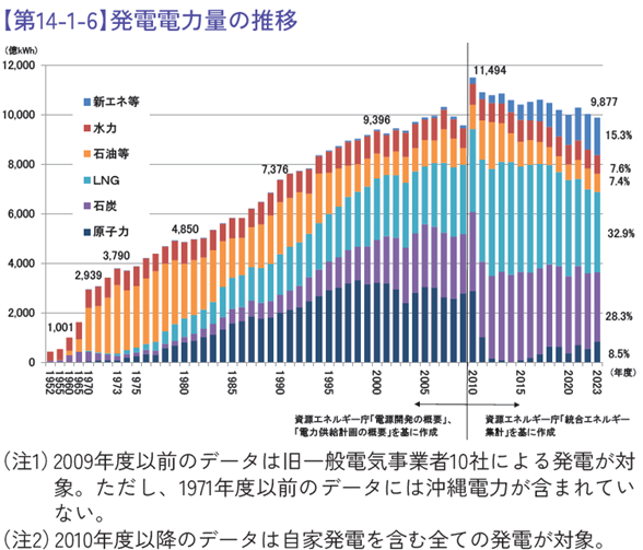 さて発電部門についてはどうか(図)。発電電力量の23年のデータを見ると、石油は7.4%、天然ガス(LNG)が32.9%、石炭が28.3%などとなっている。