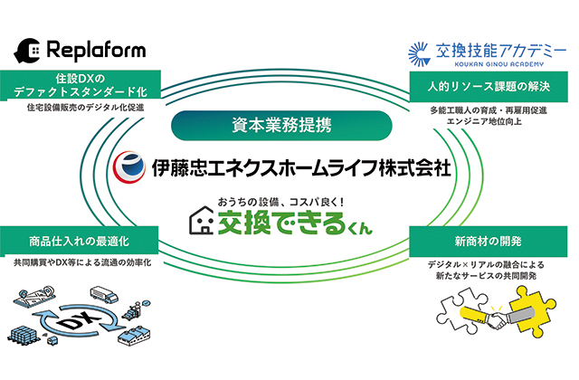 若松 24年12月に住宅設備機器のEC事業を展開する「株式会社交換できるくん」と業務・資本提携しました。ハウスメーカーや管理会社が住宅設備のECサイトを運用するプラットフォーム「Replaform」を共同で開発しました。25年7月にはその1号店として、当社ECサイト「eコトもーる」をリリースしました。商品検索、見積作成、販売決済までをワンストップでオンライン完結し、利用者はコンロなどの住宅設備機器を簡単に交換できます。今まで顧客接点は対面が中心でしたが、こうした技術で新たな顧客接点を創出したいと思っています。